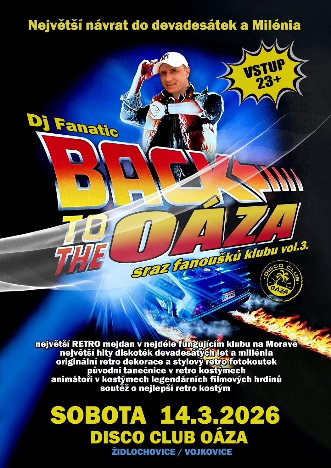 Třetí pokračování vzpomínkové party na diskotéku Oáza ve Vojkovicích. Tentokrát se sejdeme v sobotu 14. března 2026. Opět bude věková hranice pro vstup pouze pro starší 23 let a pro vaše pohodlí a kvalitnější servis bude kapacita omezena na 400 osob.