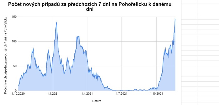 Po letní pauze se koronavirová situace horší i na Pohořelicku. V regionu je nejvyšší počet nových případů za posledních 7 dní od začátku pandemie - překonal i vrchol z letošní zimní vlny. Ještě v polovině letošního října bylo přitom na Pohořelicku okolo tří desítek nových případů za poslední týden, k 20. listopadu už toto číslo vzrostlo na 145.