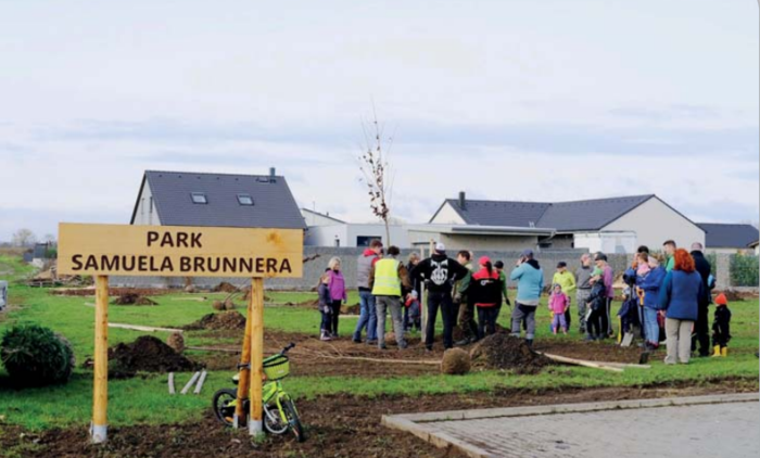 Dne 5.11.2022 dopoledne se v lokalitě Polní shromáždilo cca 40 občanů a pracovníků města. Důvodem byla výsadba stromů a keřů v místě budoucího parčíku. Parčíku dali místní občané jméno podle názvu přilehlé ulice – „park Samuela Brunnera“ (Samuel Brunner byl malíř, který se shodou okolností narodil 5.11.1858 v Pohořelicích, zemřel 9.5.1939 v Brně). Podle osazovacího plánu a za dohledu městských zahradníků – manželů Hofbauerových – zasadili přítomní 20 stromů a přes 80 keřů. Jedním ze stromů byl i smrk, který bude v budoucnu fungovat jako místní vánoční strom. Většinu z přítomných tvořili občané lokality Polní, zúčastnil se rovněž starosta s rodinou a oba místostarostové.