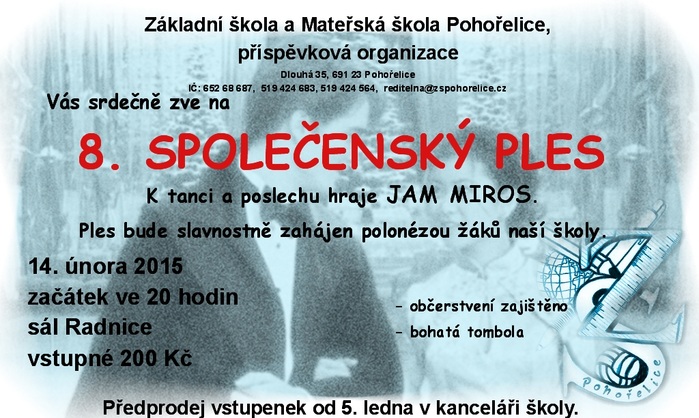 ŽŠ a MŠ Pohořelice vás srdečně zvou na 8. společenský ples konaný v sobotu 14. února od 20 hodin v sále Radnice.